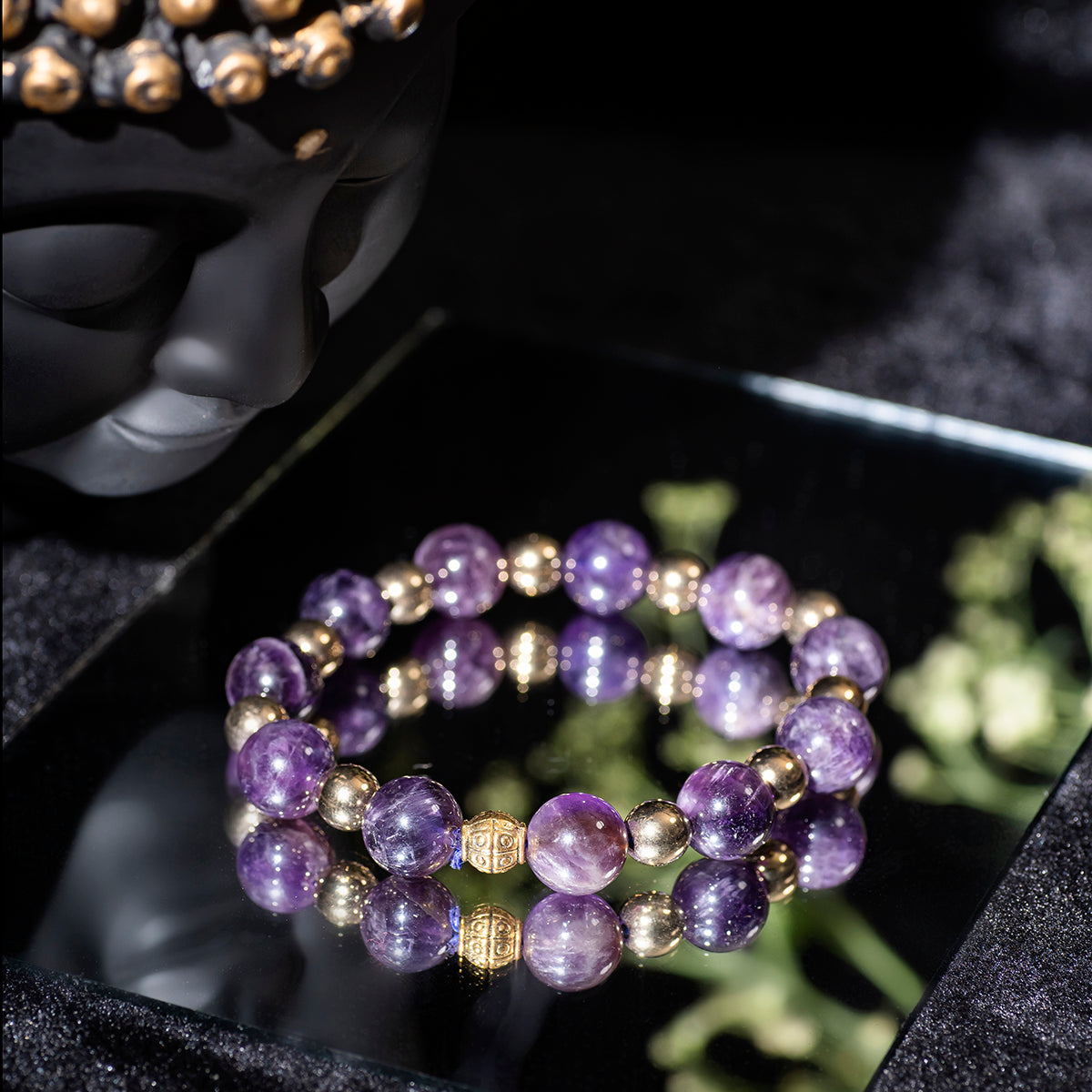 EYKAA AMETHYST AND GOLDEN HEMATITE BRACELET