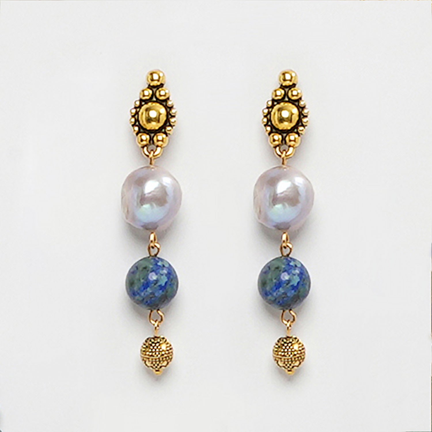 EYKAA AZURITE WITH FRESHWATER PEARL EARRINGS
