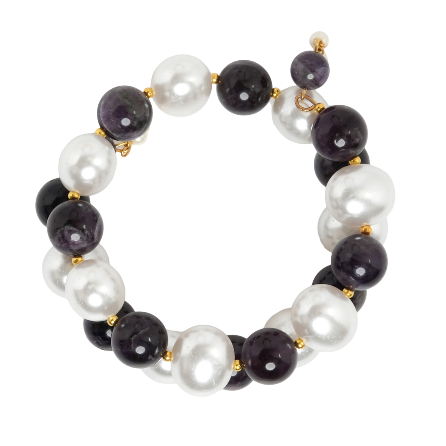 EYKAA HEMATITE AND FRESHWATER PEARL BRACELET