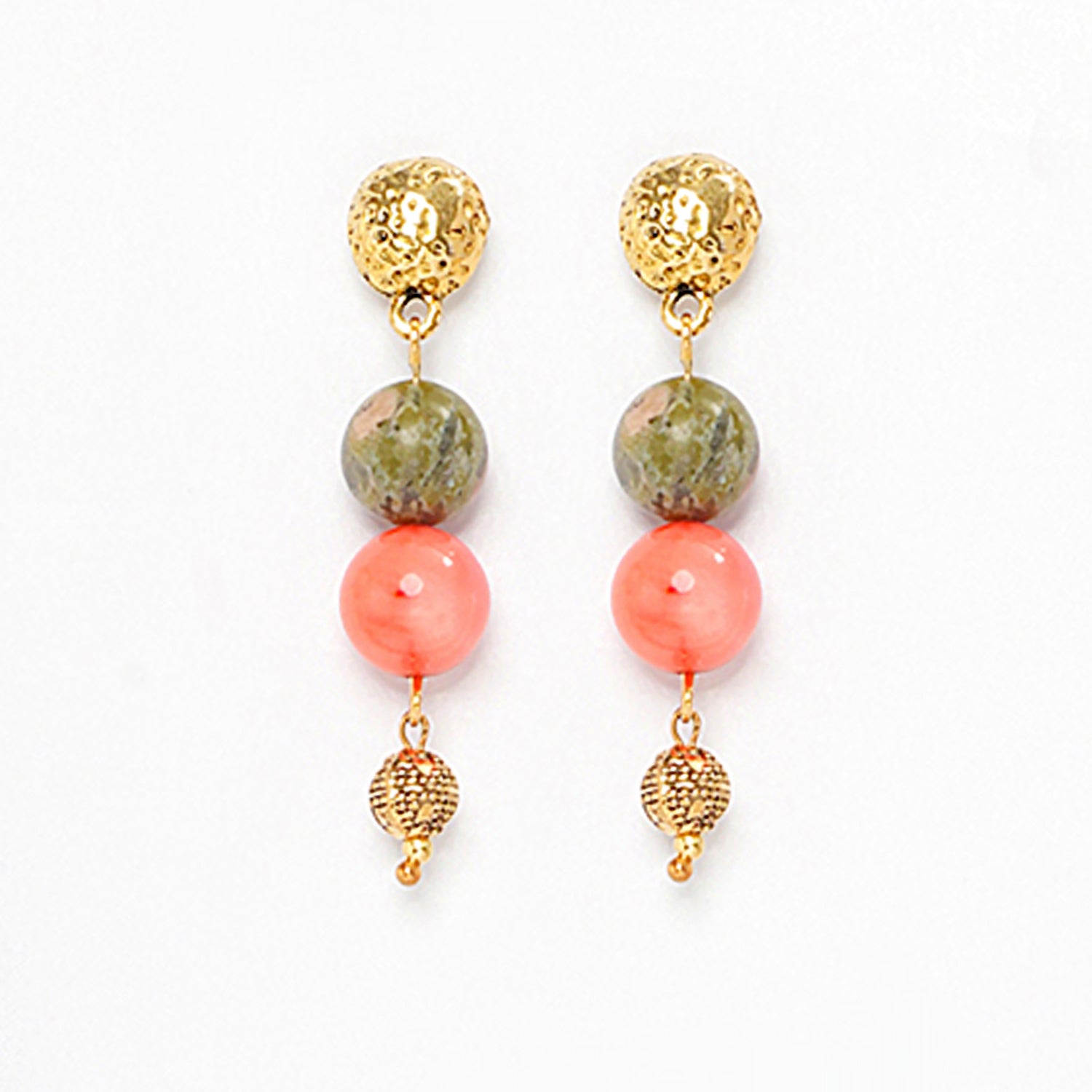EYKAA CORAL, UNAKITE, and GOLDEN BEADS EARRINGS