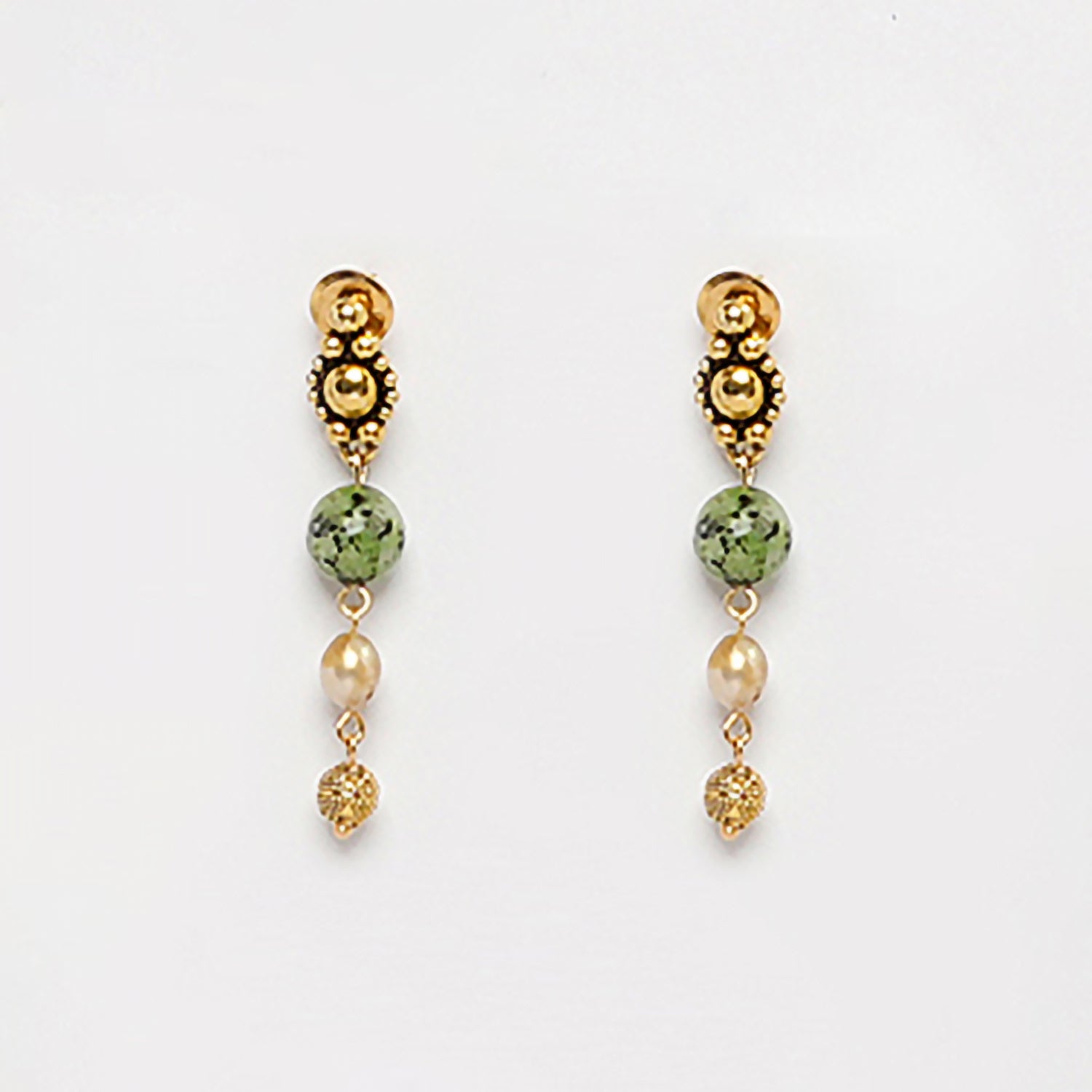 EYKAA GREEN DALMATIAN AND FRESH WATER PEARL EARRINGS