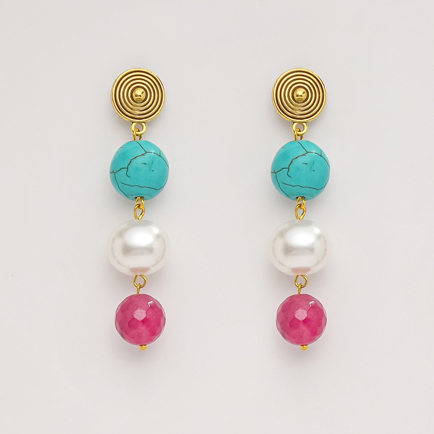 Enhance Your Look with Eykaa: Korean Pearl Ball Earrings with Eykaa Firoza and Maroon Jade.