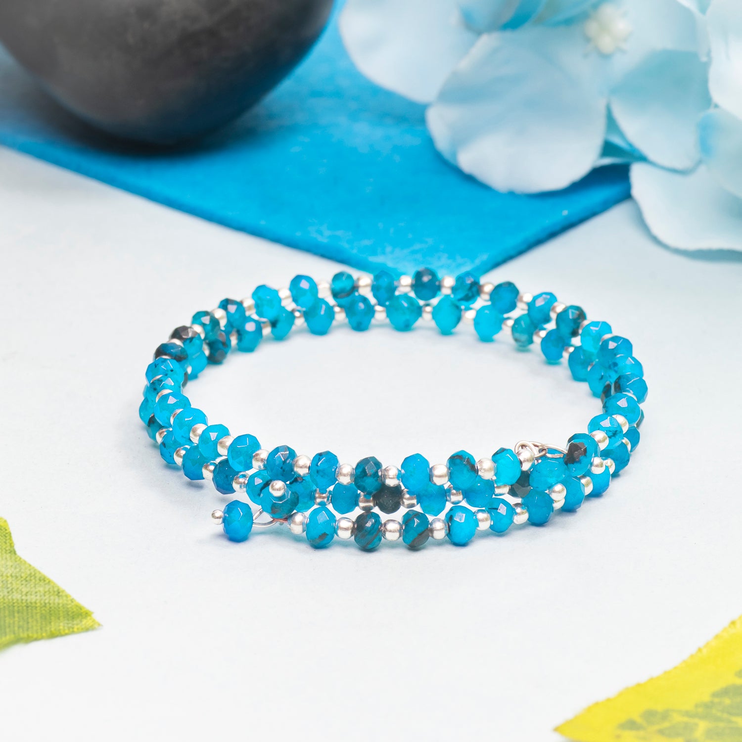 EYKAA LIGHT BLUE FACETED JADE AND FRESH WATER PEARL FREE SIZE BRACELET