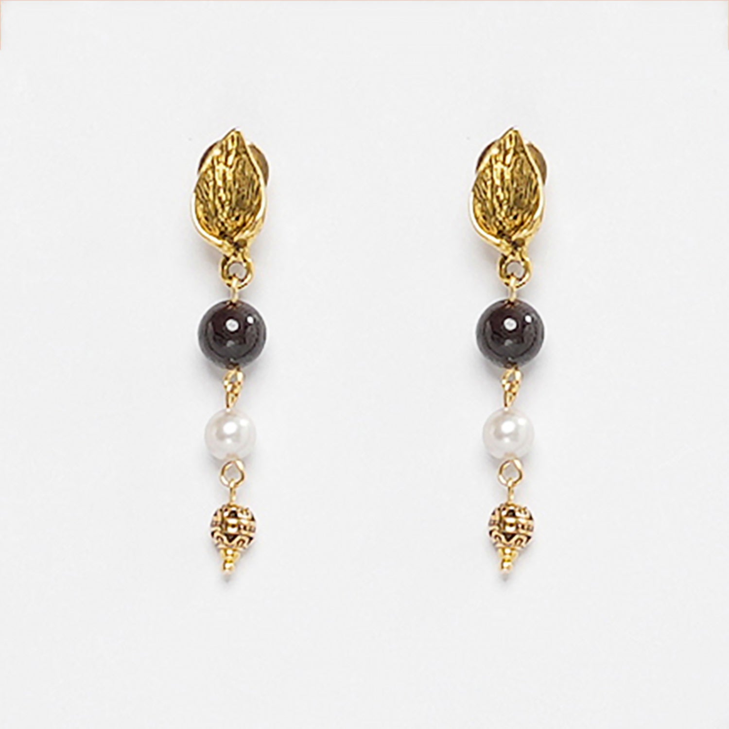 Eykaa Garnet Earrings with Shell and Fresh Water Pearls: Enhance Your Look with Ethical Beauty.