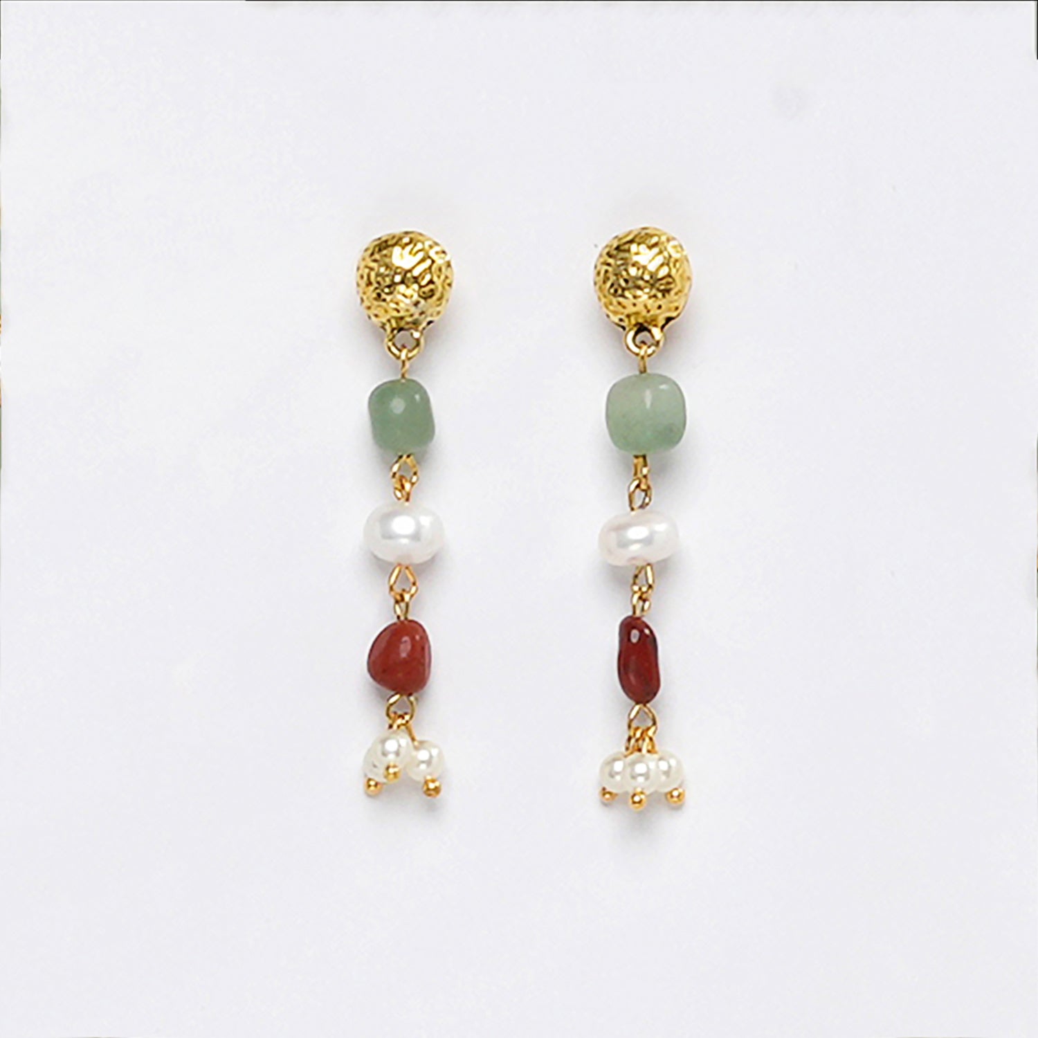 EYKAA Green Aventurine, Golden Hematite, and Shell Pearl Earrings