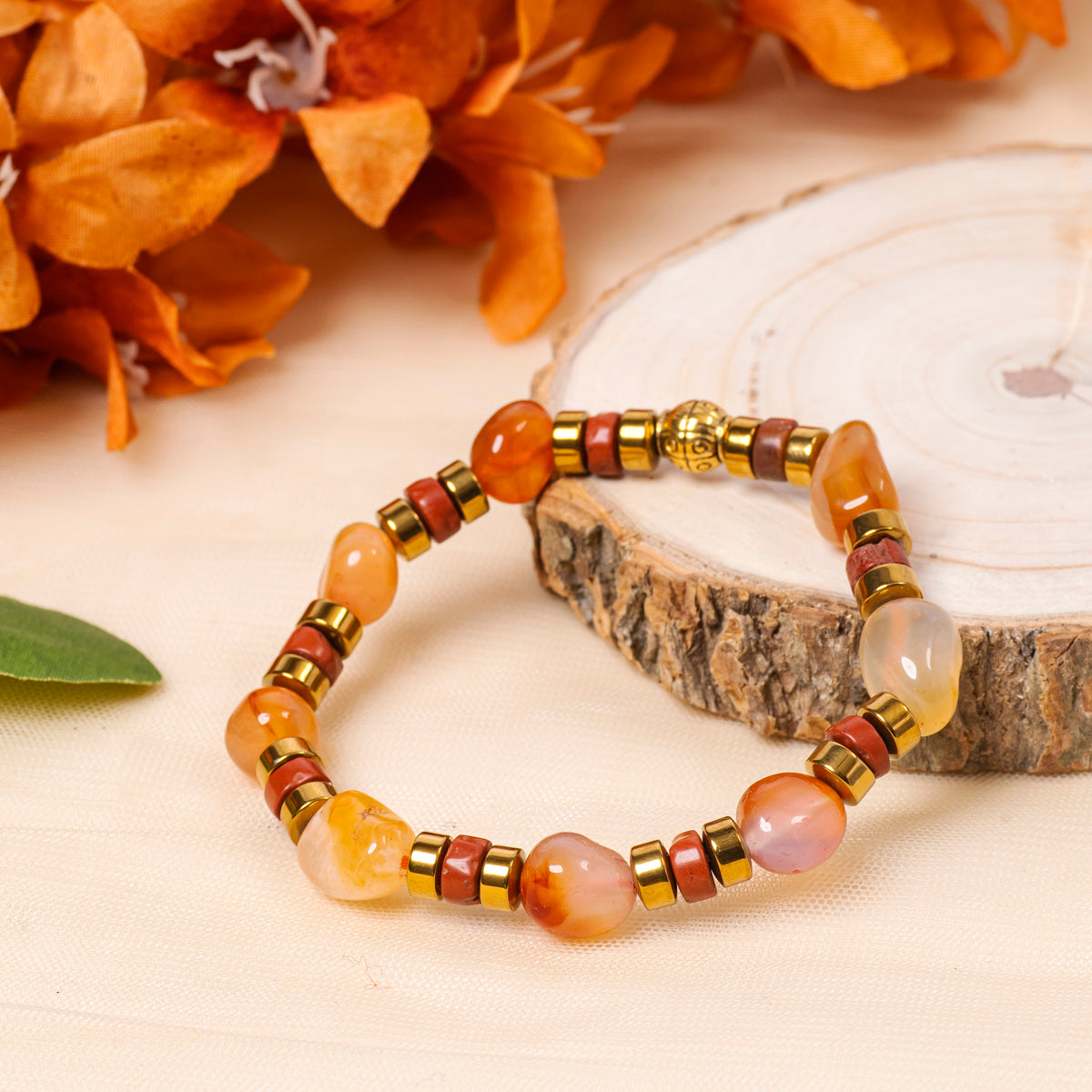 Eykaa: Redefining Elegance with a Jade Bracelet with Tumble Carnelian and Golden Hematite.