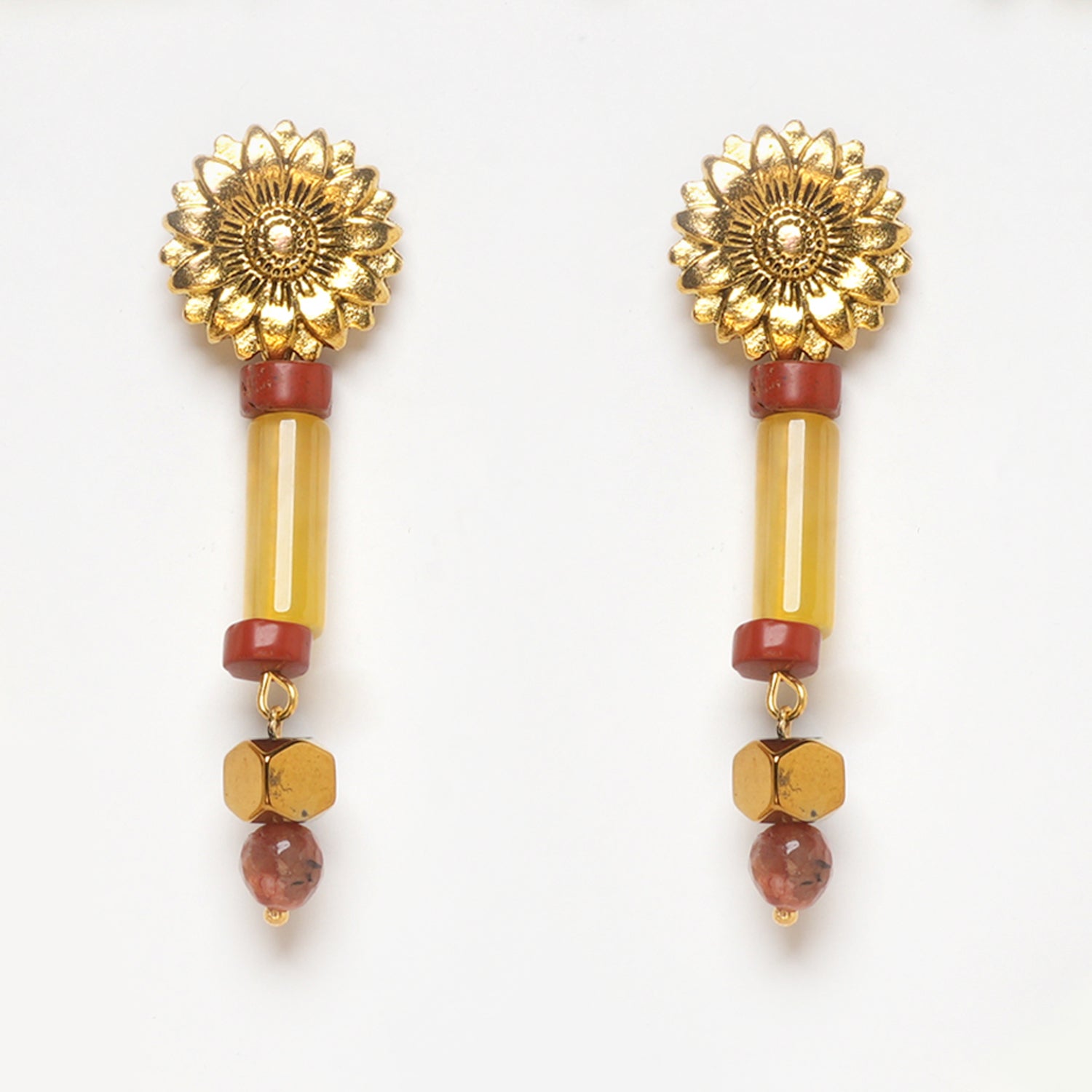 Eykaa Yellow Agate, Carnelian, Dalmatian, Golden Hematite, and Red Jasper Earrings: Radiant Elegance.