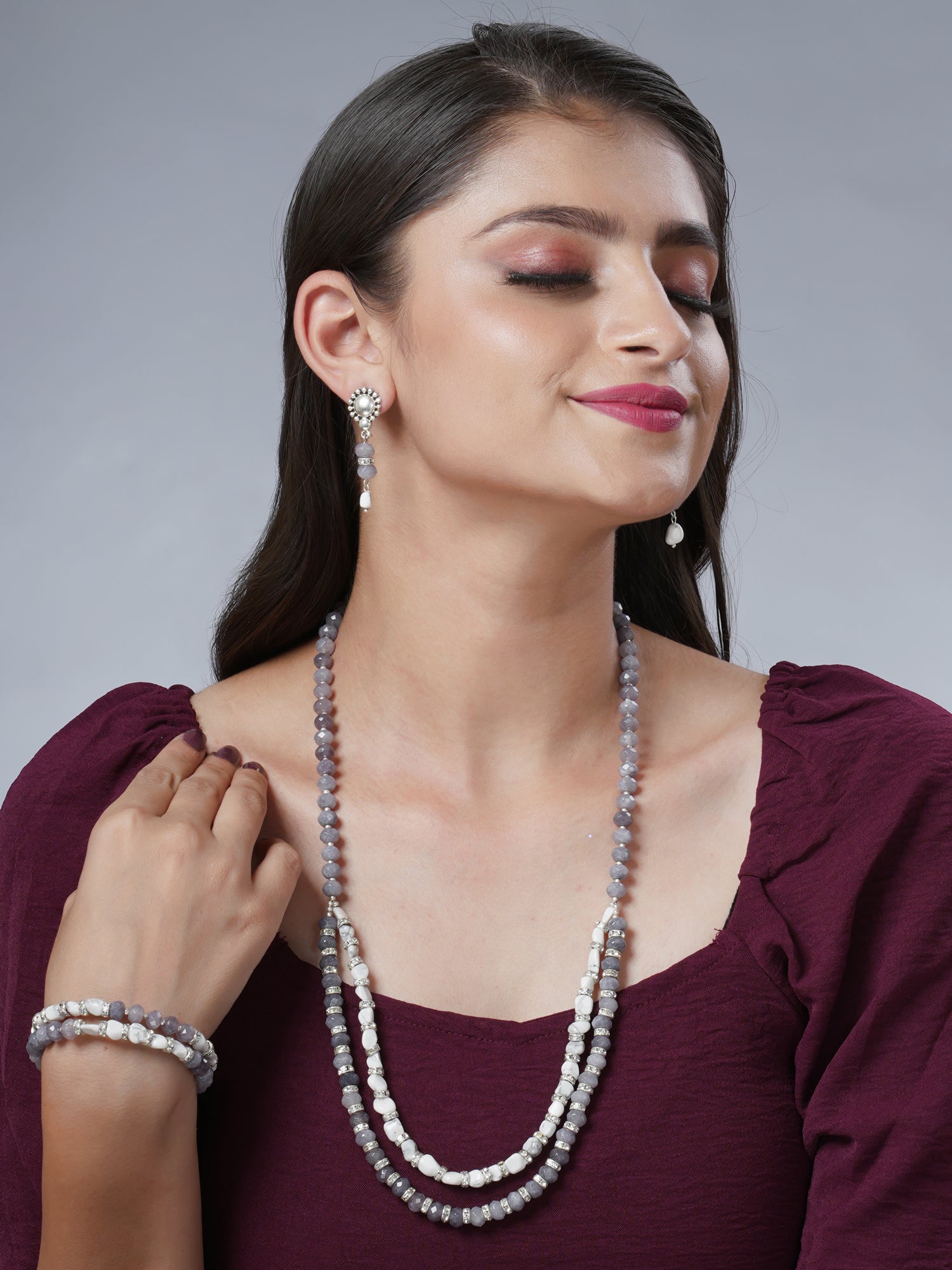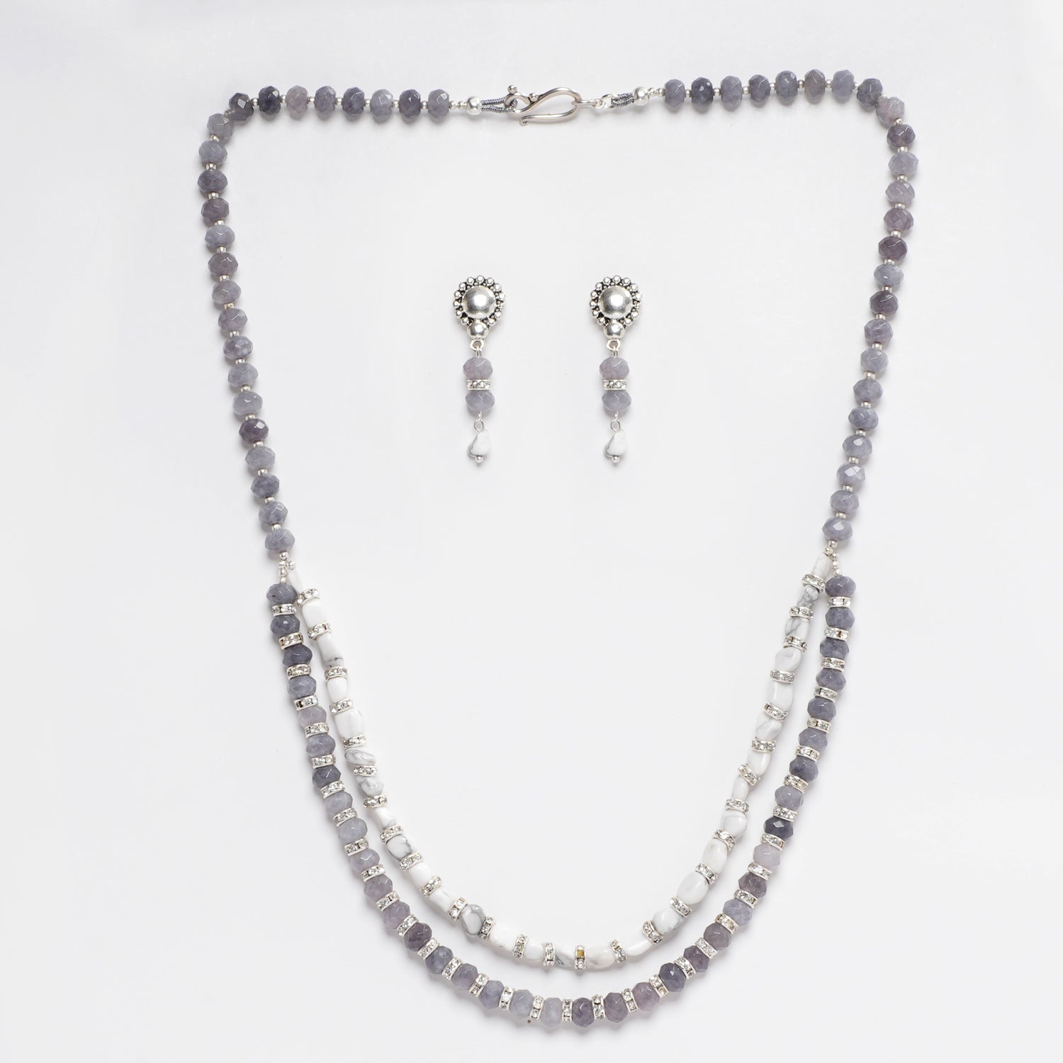 Elevate your style with this exquisite necklace and earring set, featuring the stunning combination of white howlite and grey jade.