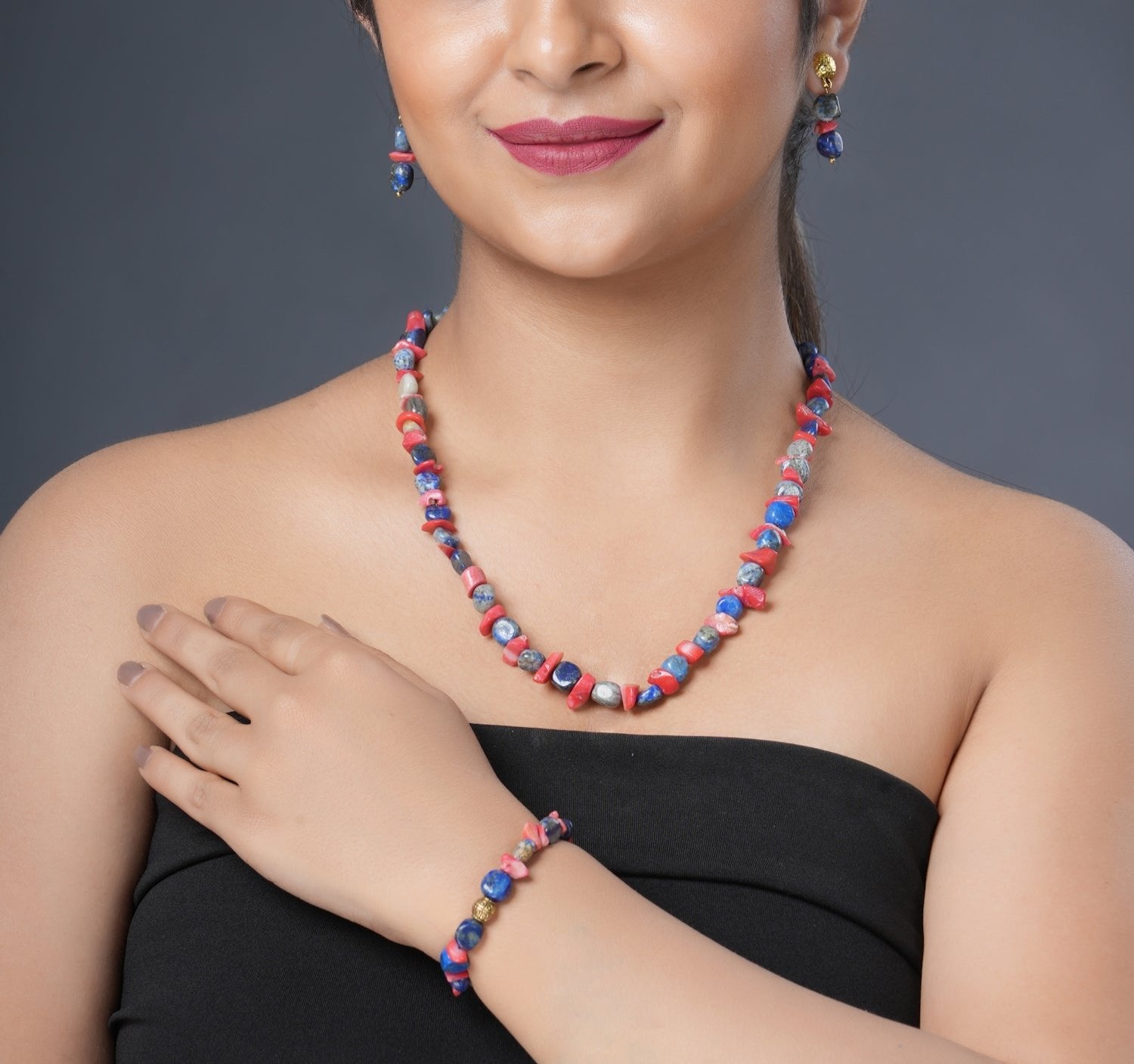 EYKAA LAPIS LAZULI AND CORAL BRACELET