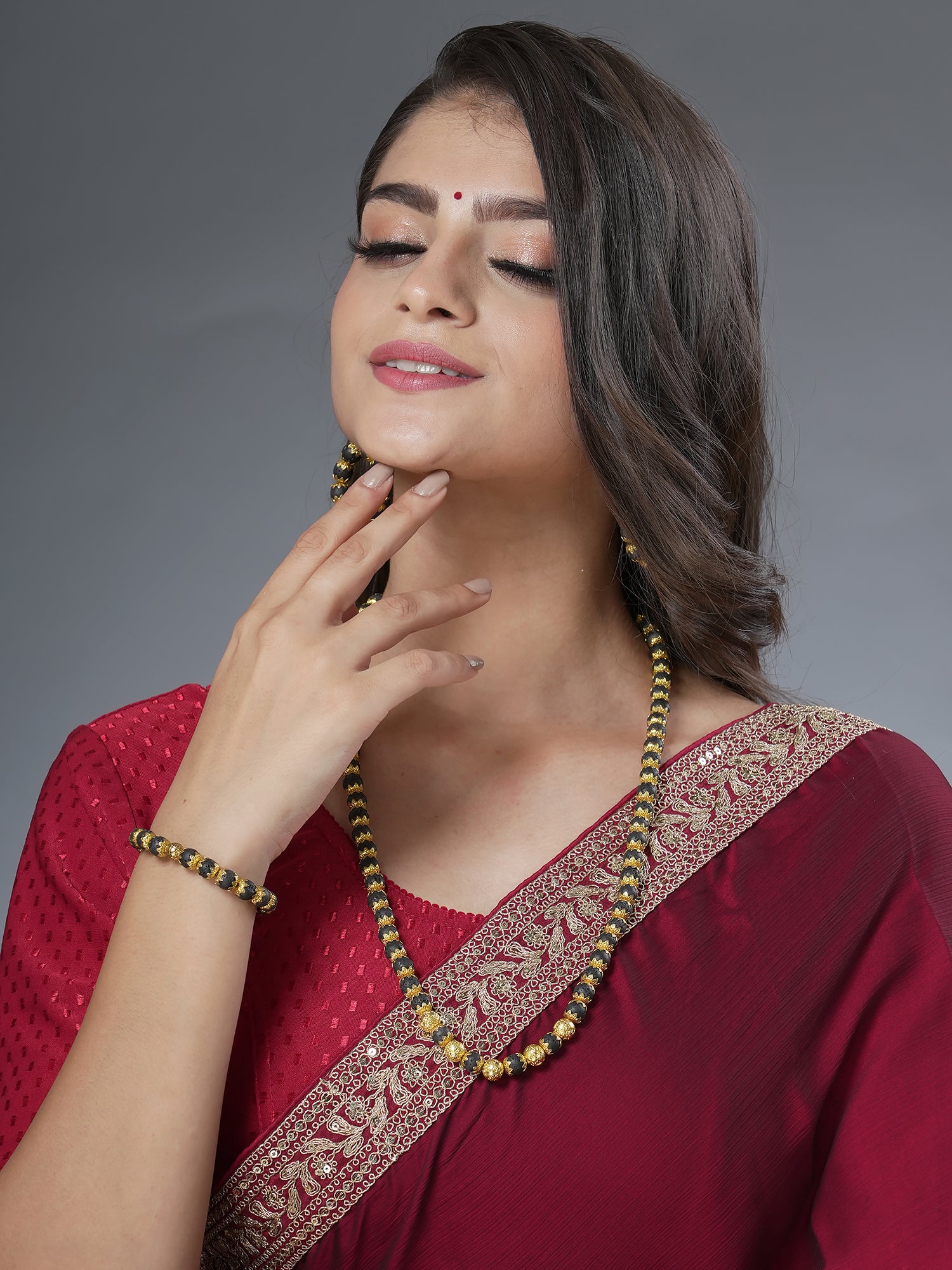 Elevate your style and well-being with this exquisite necklace set, featuring a stunning combination of black lava and golden lava.