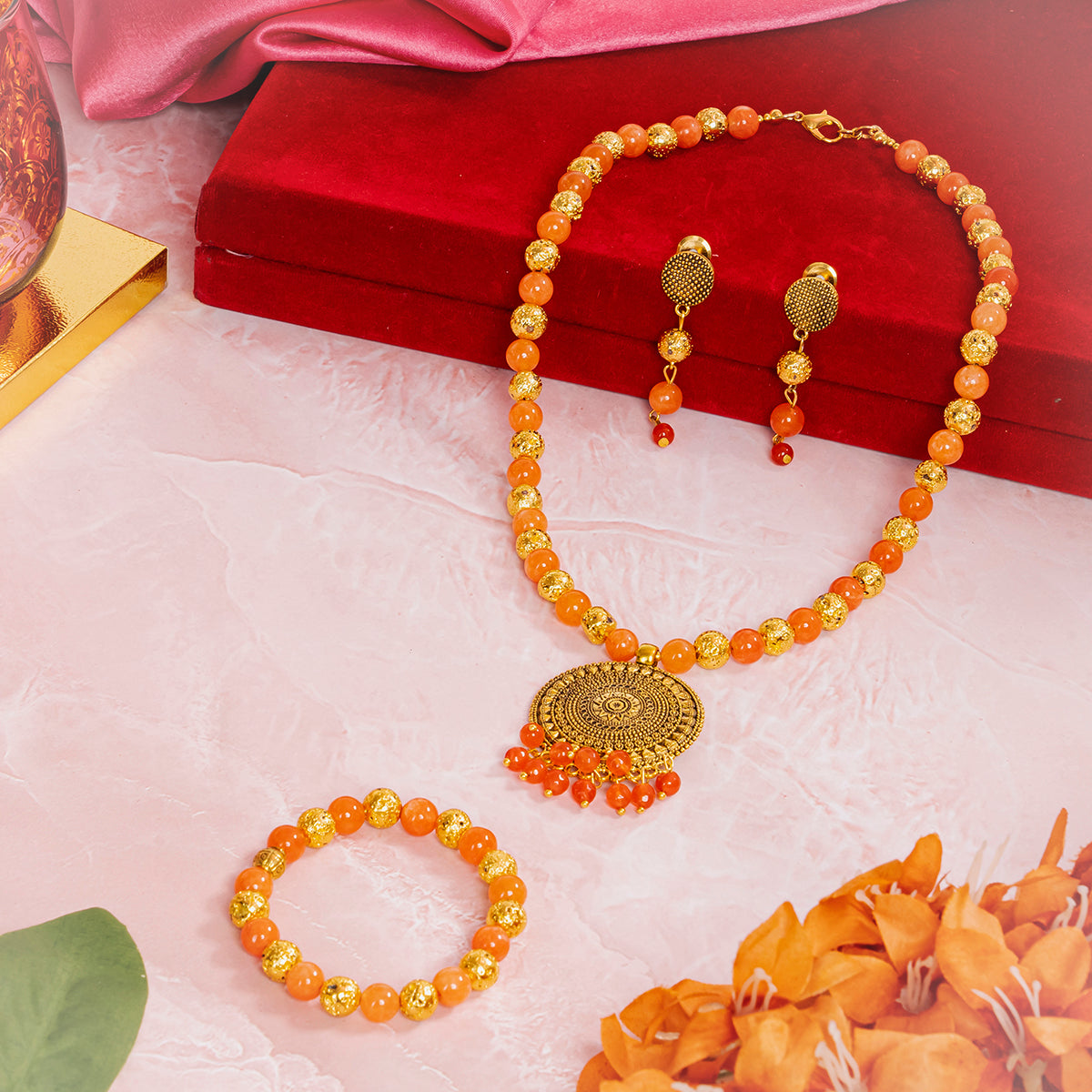 EYKAA ORANGE JADE AND GOLDEN LAVA BRACELET