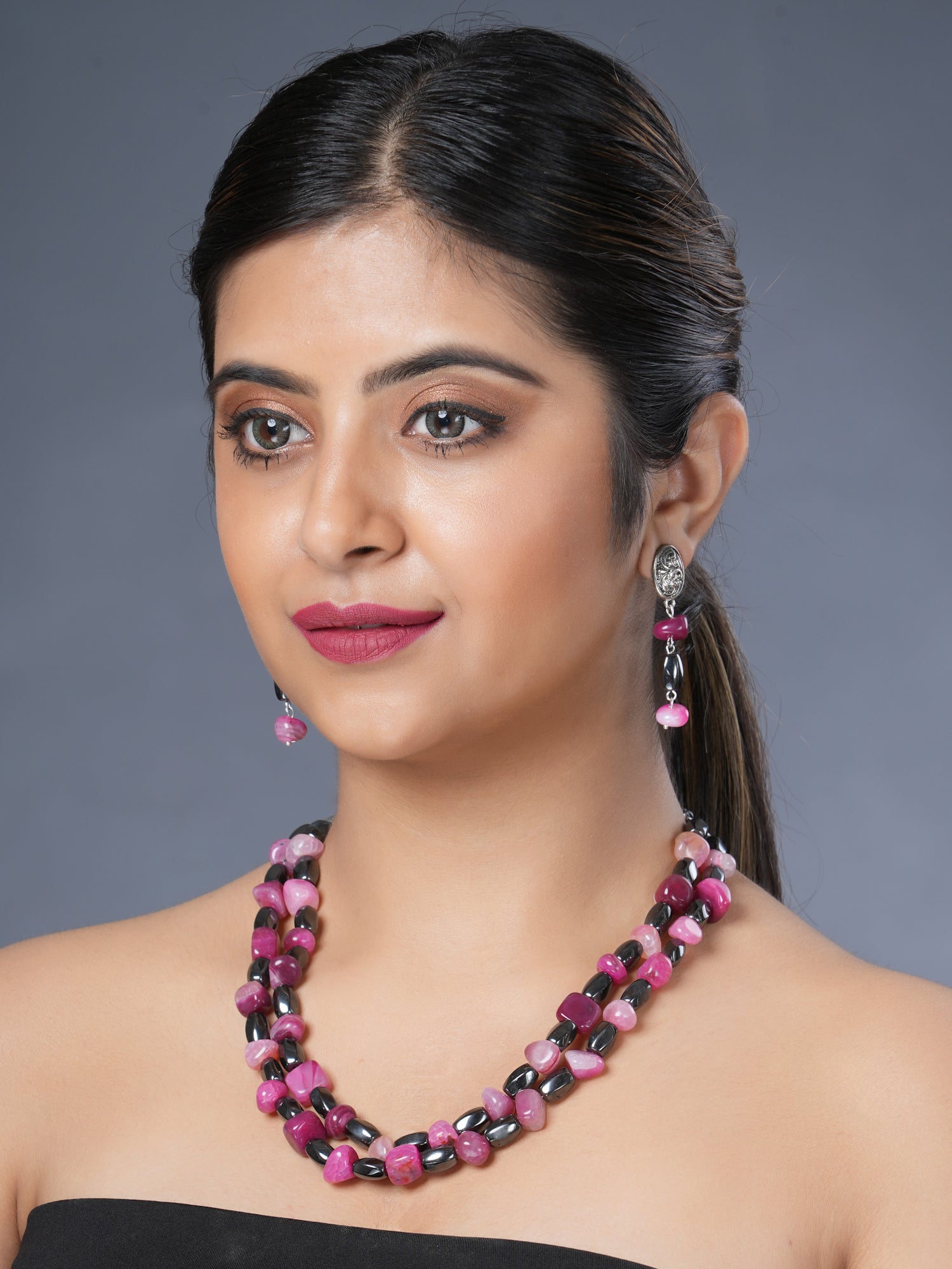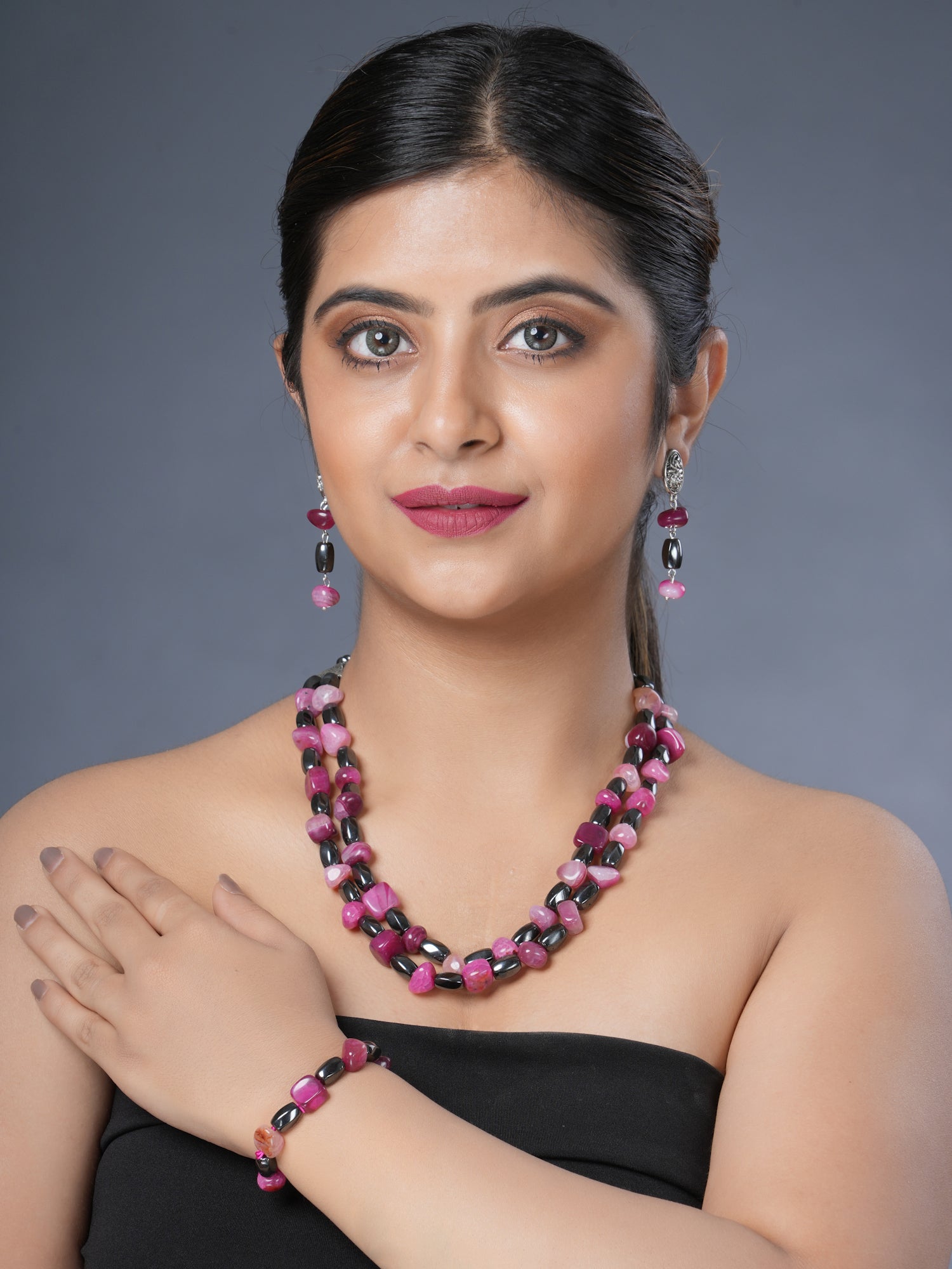 Hematite and Pink Agate Tumble Layered Bracelet - Eykaa jewellery.