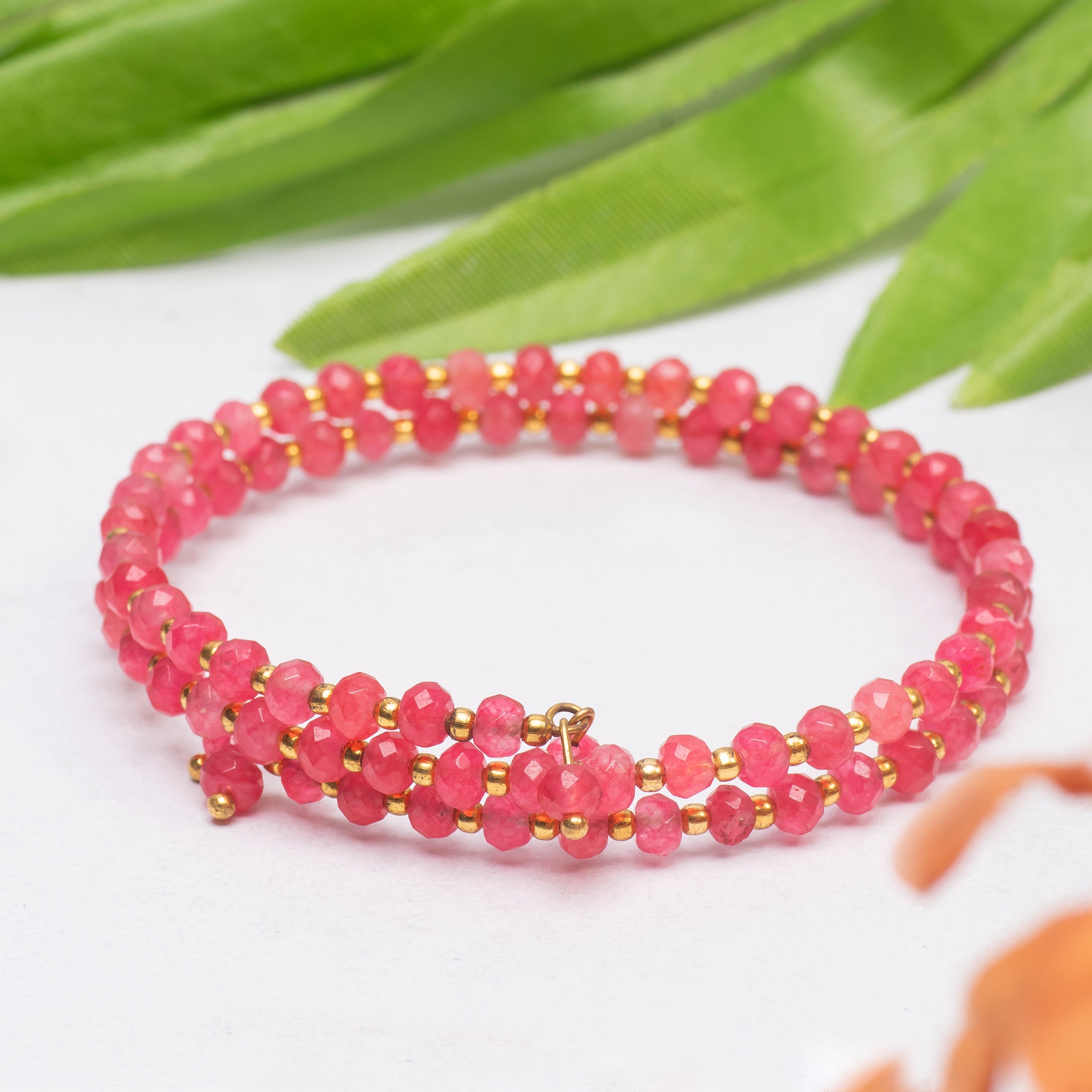 EYKAA PINK FACETED JADE WITH FRESHWATER PEARL FREE SIZE BRACELET