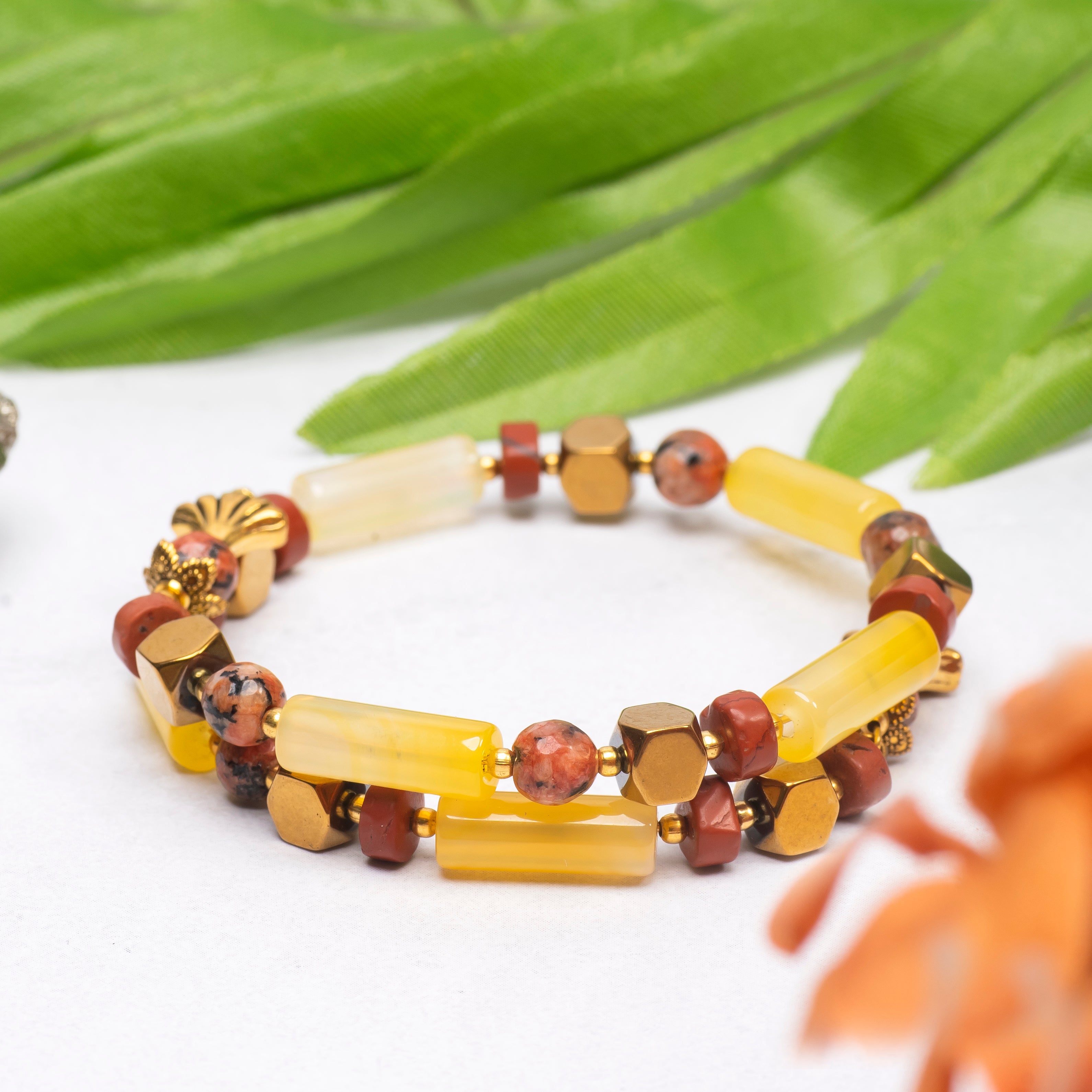With Eykaa's Carnelian, Golden Hematite, Yellow Agate, Red Jasper, and Dalmatian necklace and earrings, you may radiate elegance.