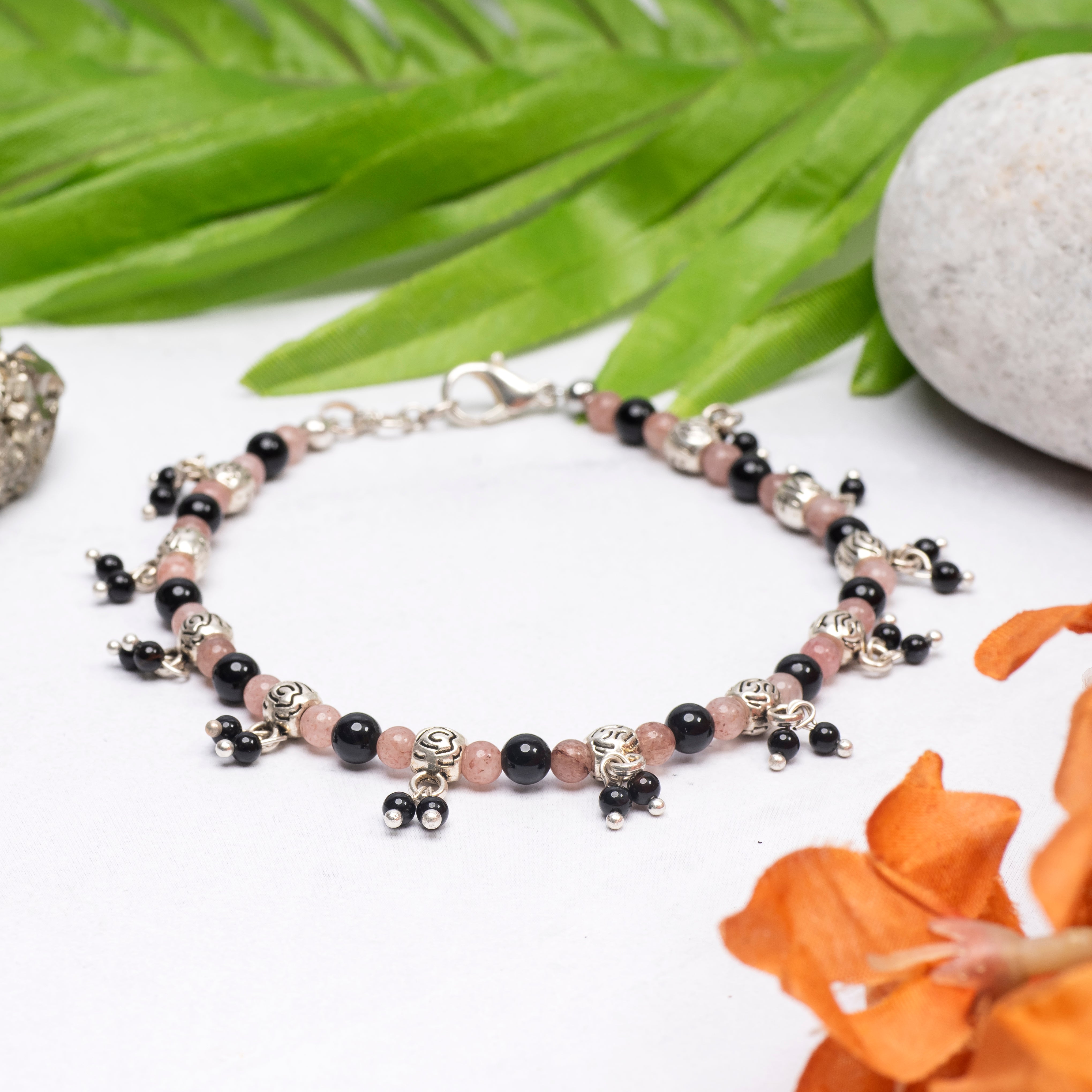 EYKAA STRAWBERRY QUARTZ AND BLACK ONYX ANKLET