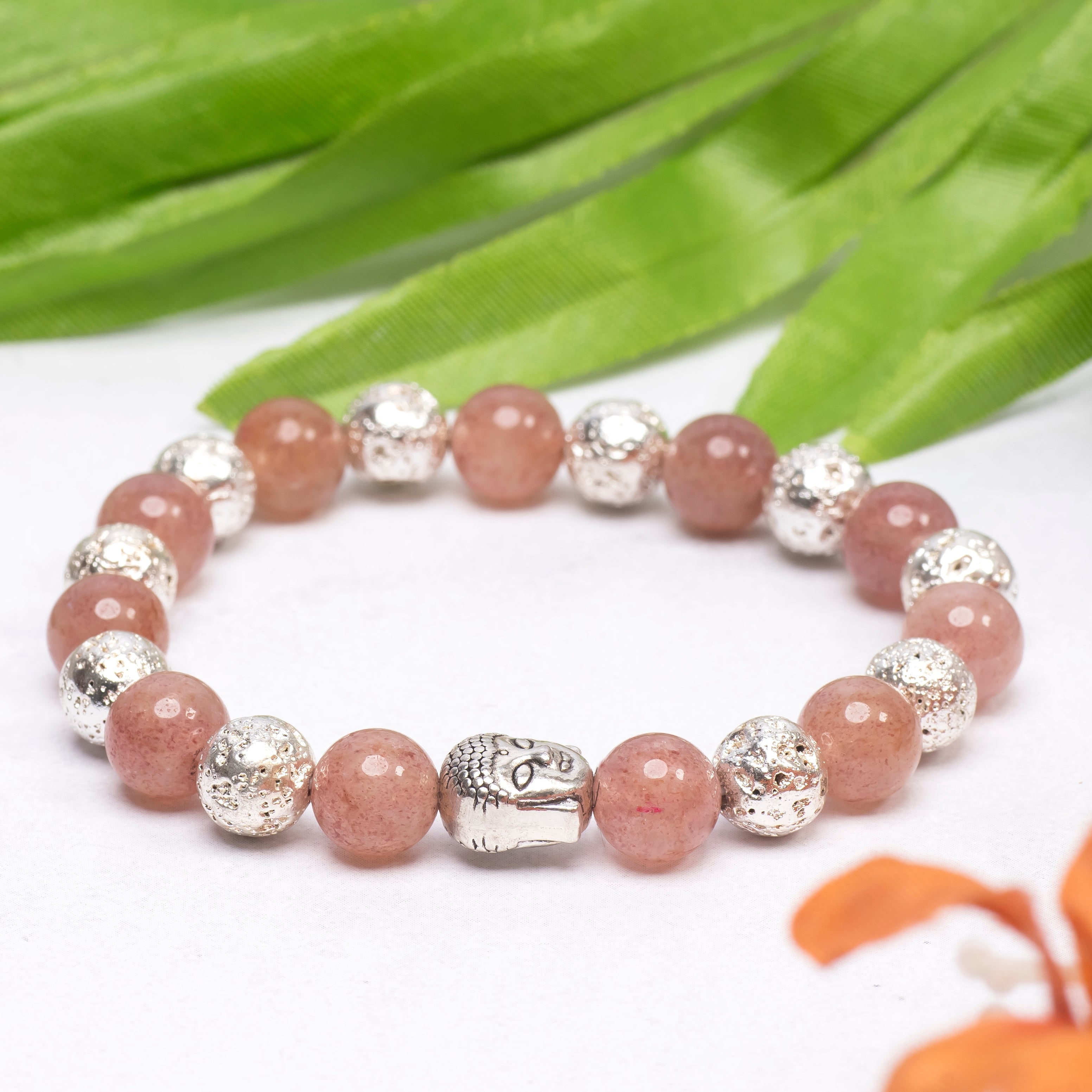 Eykaa Strawberry Quartz with silver Lava Bracelet.