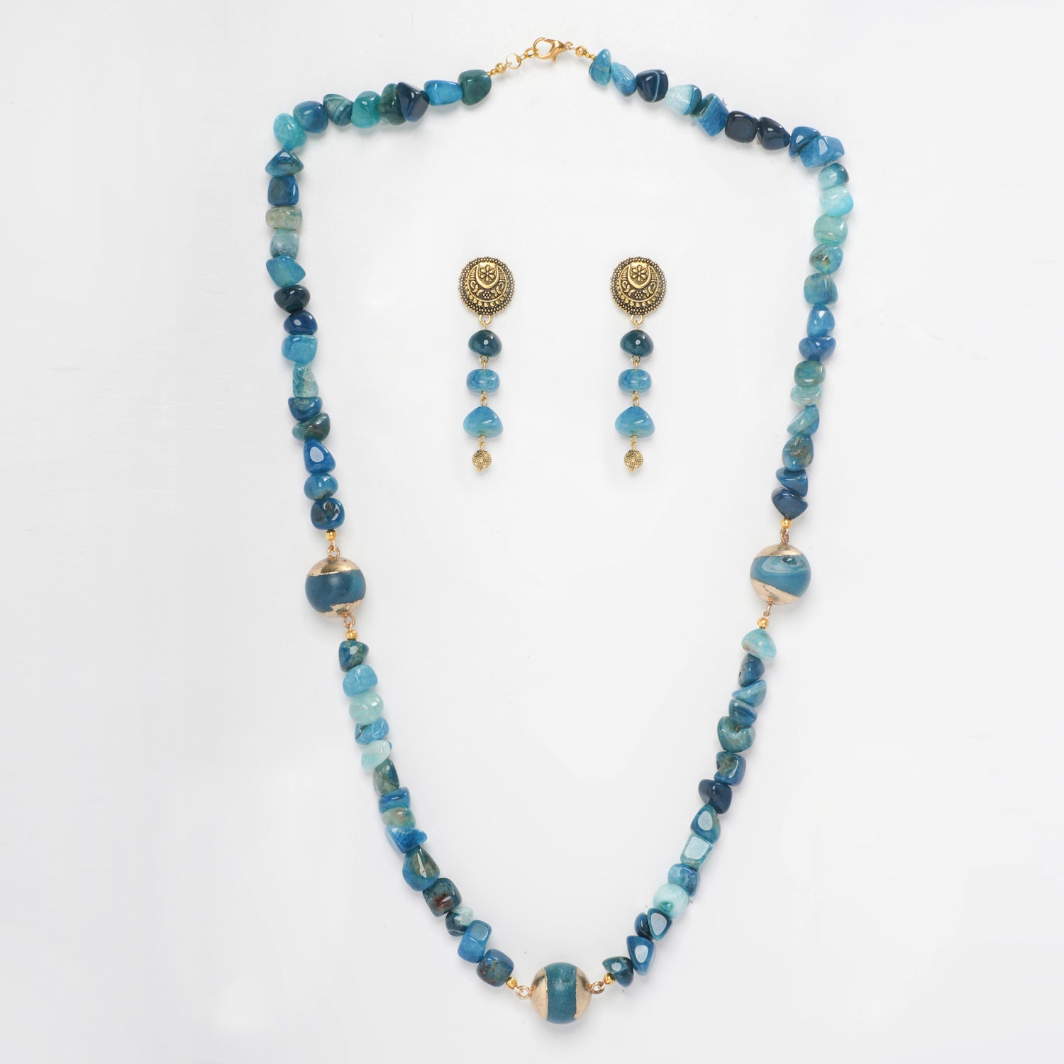 Elevate your style and well-being with this exquisite necklace and earring set, featuring the stunning beauty of tumbled agate.