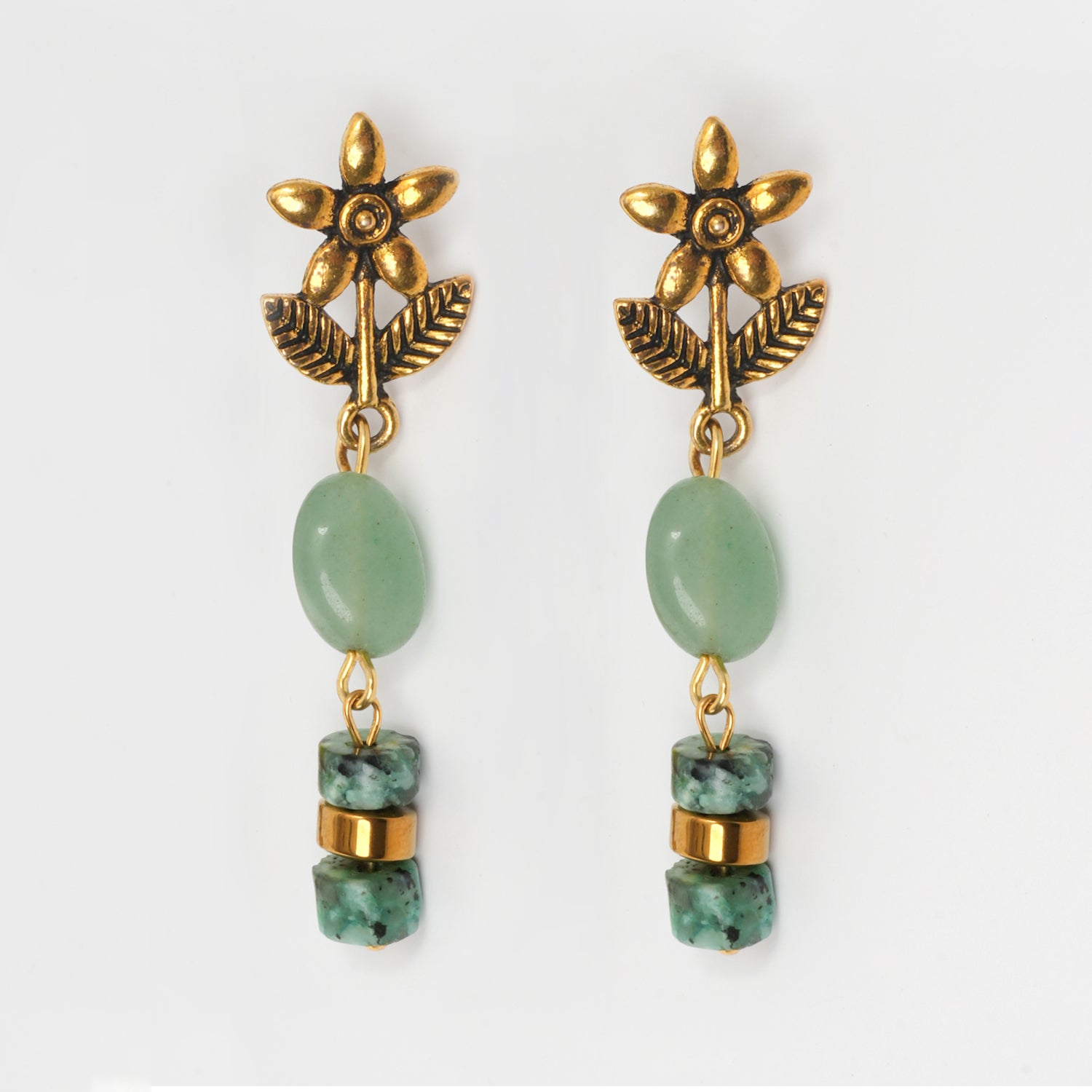 EYKAA Green Aventurine, Dalmatian, and Golden Hematite Earrings