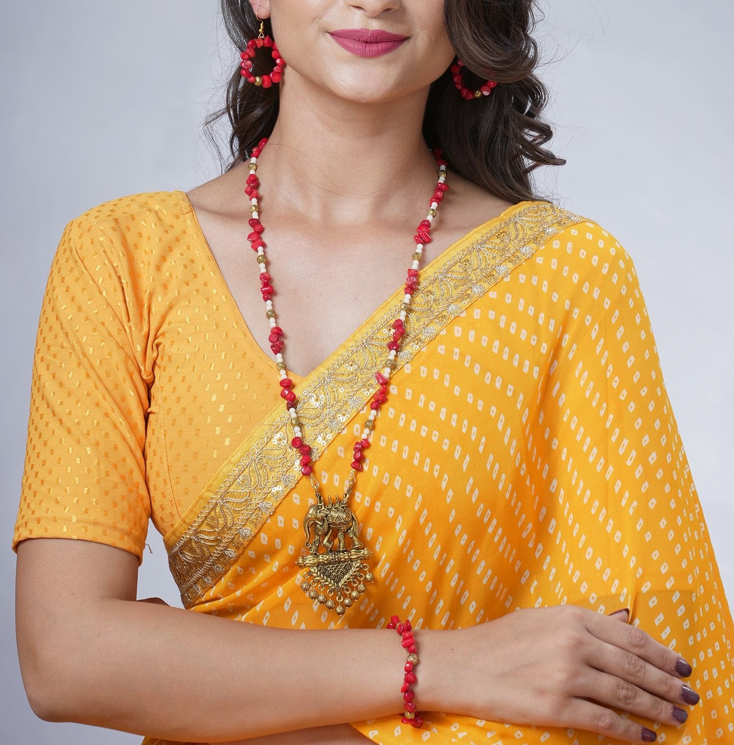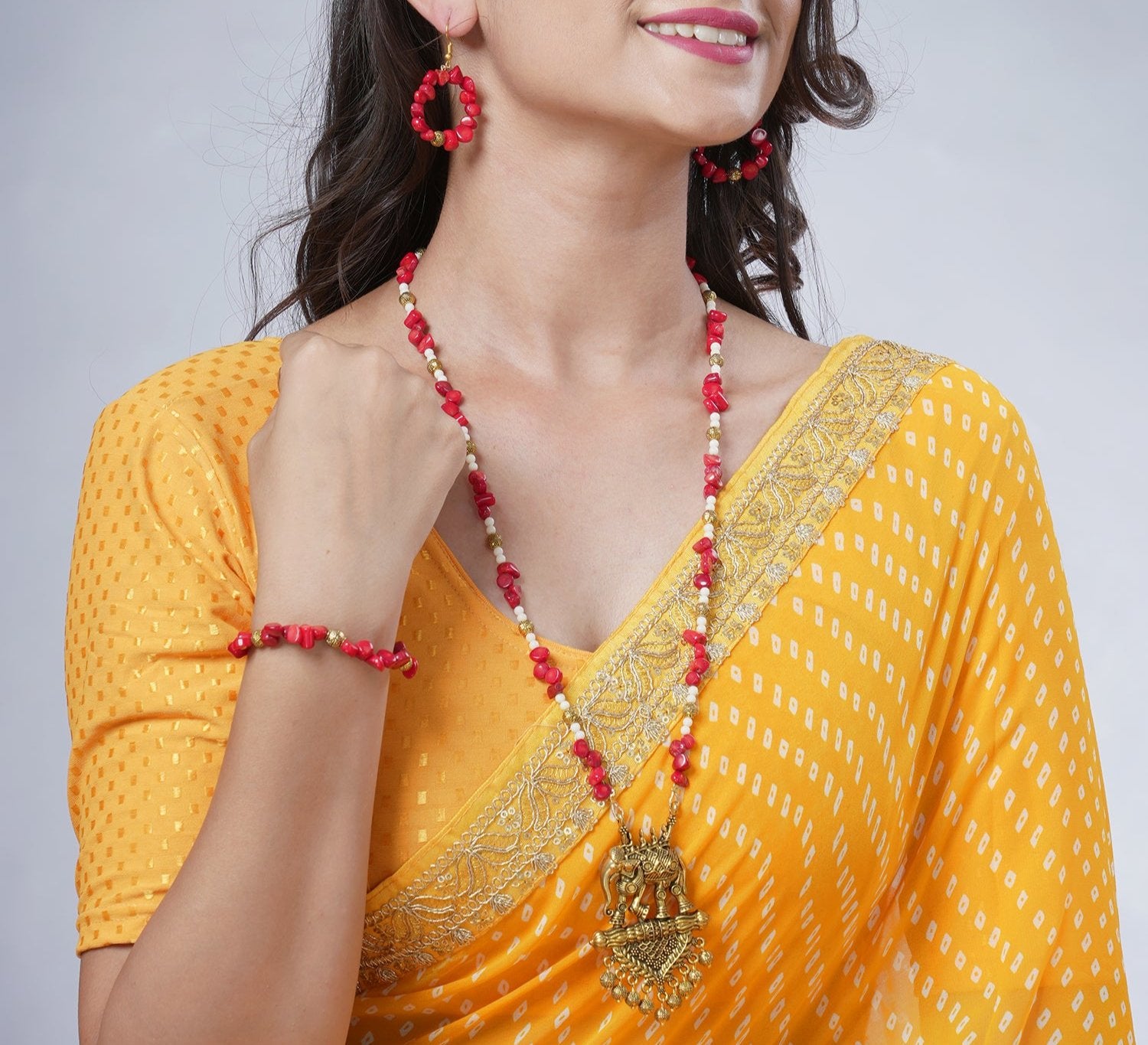 Elevate your style with this exquisite necklace and earring set, featuring the stunning combination of white and red coral