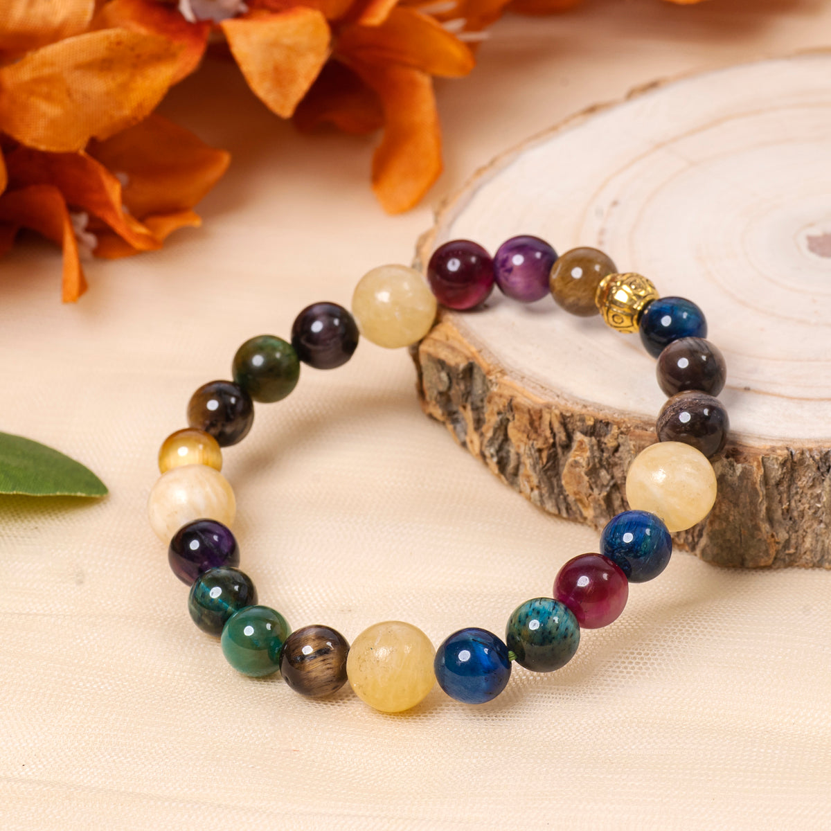 Tiger Eye bracelet in several colours and Yellow Calcite by Eykaa.